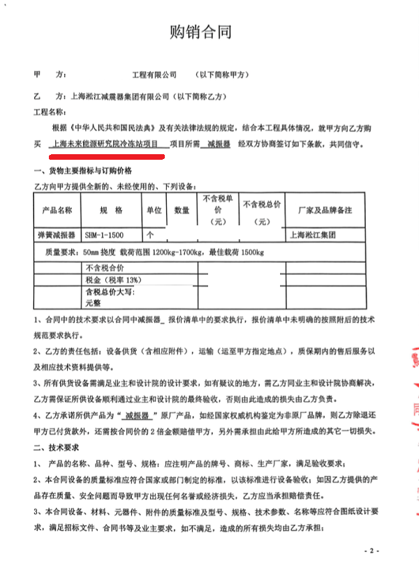 二、【宁德时代未来能源上海研究院冷冻站项目】弹簧减震器合同扫描件,请勿转载: