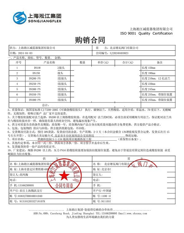 【北京翠湖科技园项目】地源热泵橡胶接头合同